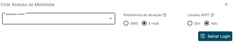 Essa opção permite criar um login de acesso à plataforma, cadastrando automaticamente o colaborador como usuário, sendo necessário informar o perfil de acesso que será vinculado ao mesmo. Também é possível definir se o usuário terá acesso ao aplicativo checklist, caso sim, o pin de acesso será gerado automaticamente.