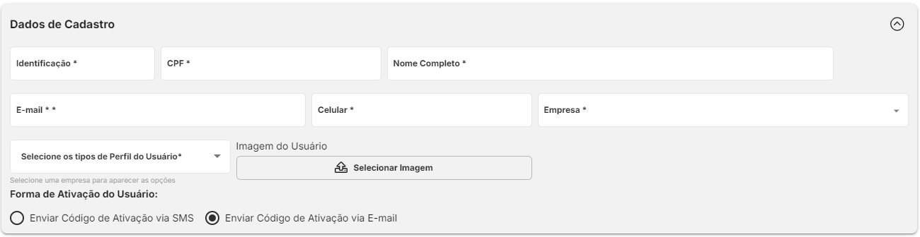 O formulário de cadastro de um novo usuário contém campos com informações essenciais que devem ser preenchidos para garantir o acesso adequado de cada usuário: