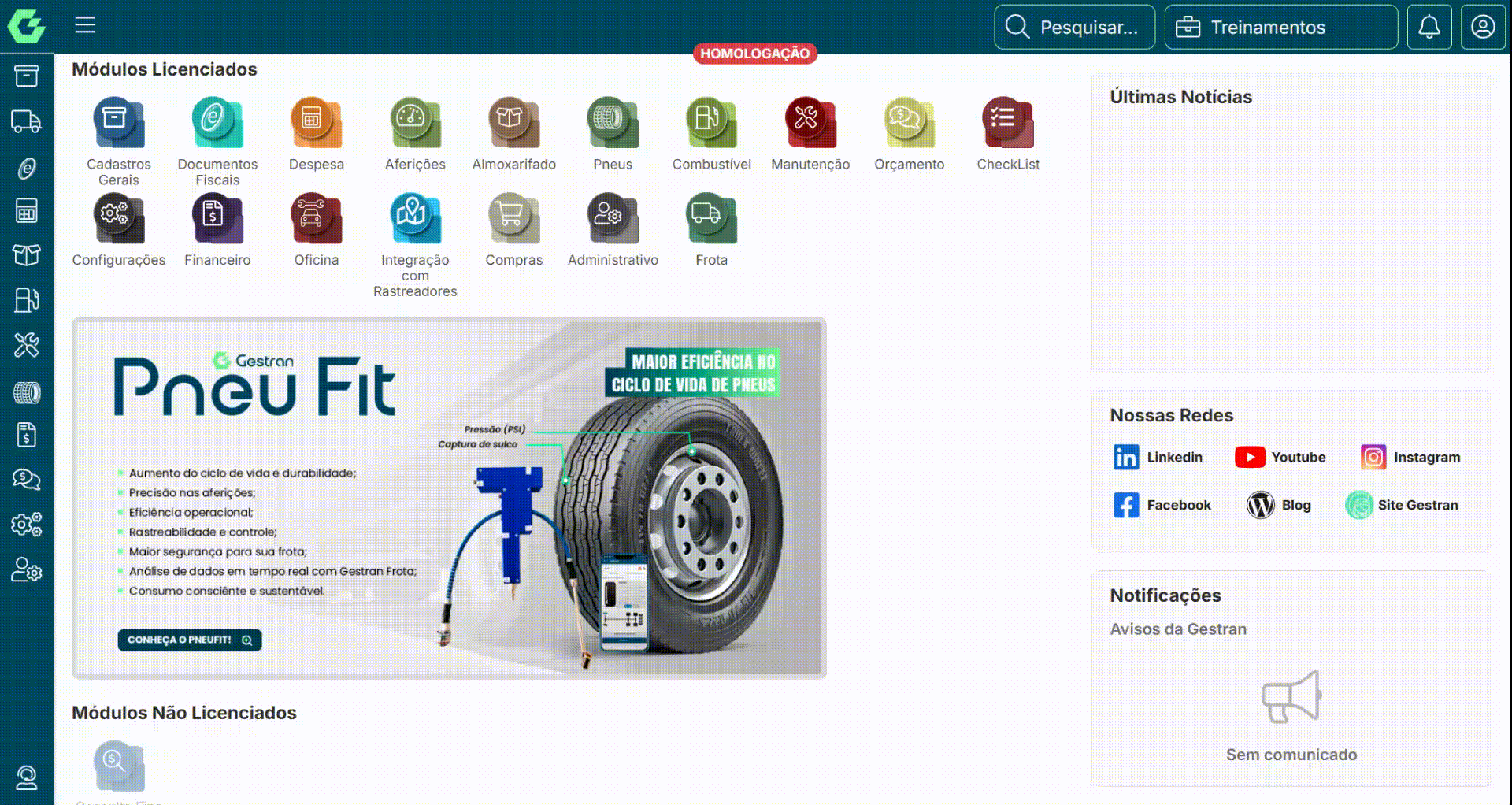 3. Alertas de Falta de Informação: Defina alertas para aferições em intervalos específicos (X dias), calibragens por dias ou quilômetros/horas e alertas de desgaste por percentual abaixo do mínimo recomendado para o sulco do pneu.