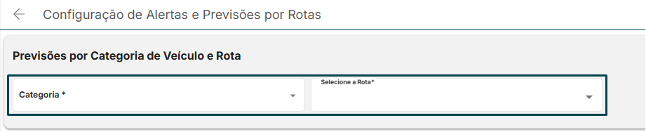 2. Seleção de Categoria e Rota: Escolha a categoria do veículo e a rota cadastrada para a aplicação dos alertas específicos.